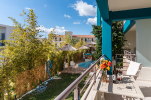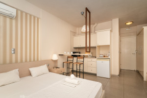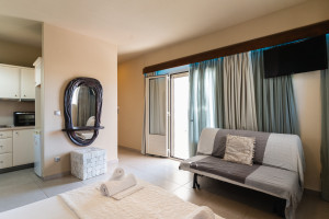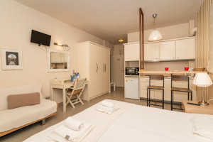 Κάθε δωμάτιο / σουίτα διαθέτει υπνοδωμάτιο, καθιστικό, πλήρως εξοπλισμένη κουζίνα, λουτρό με WC, άνετη βεράντα 10 τετραγωνικών με θέα στον κήπο. Τα πάντα για μια υπέροχη διαμονή στο ξενοδοχείο μας!
